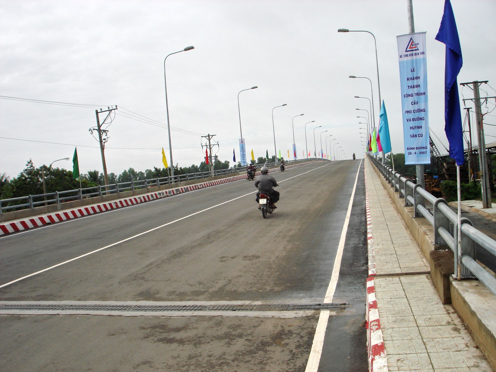 Cầu Phú Cường dài 448m, rộng 15m (tỉnh Bình Dương) và Dự án Đường Huỳnh văn Cù (trước cổng Trường Sĩ Quan Công Binh) nối liền thị xã thủ Dầu Một tỉnh Bình Dường và Huyện Củ Chi-TP Hồ chí Minh.